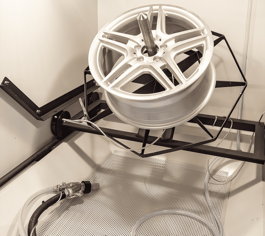 L'enceinte spécialement conçue permet le chargement et le déchargement de la roue sans aucun levage lourd.